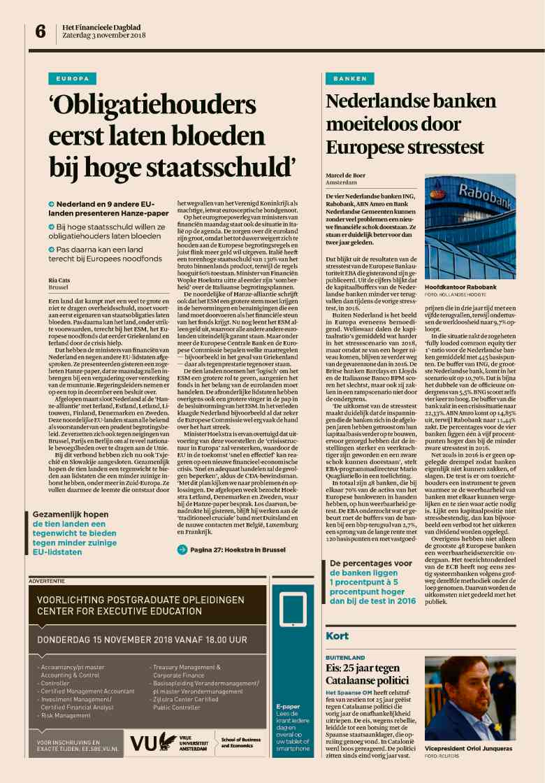 Financieel dagblad 15 november 2018. Gepubliceerd 27 november 2018. 15112018 Het artikel kunt u hier lezen. Het laatste nieuws over de beurs financile wereld economie politiek en ondernemen vind je op fdnl.