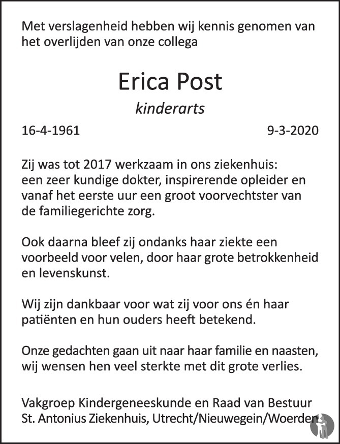 Erica Post 09 03 2020 Overlijdensbericht En Condoleances Mensenlinq Nl