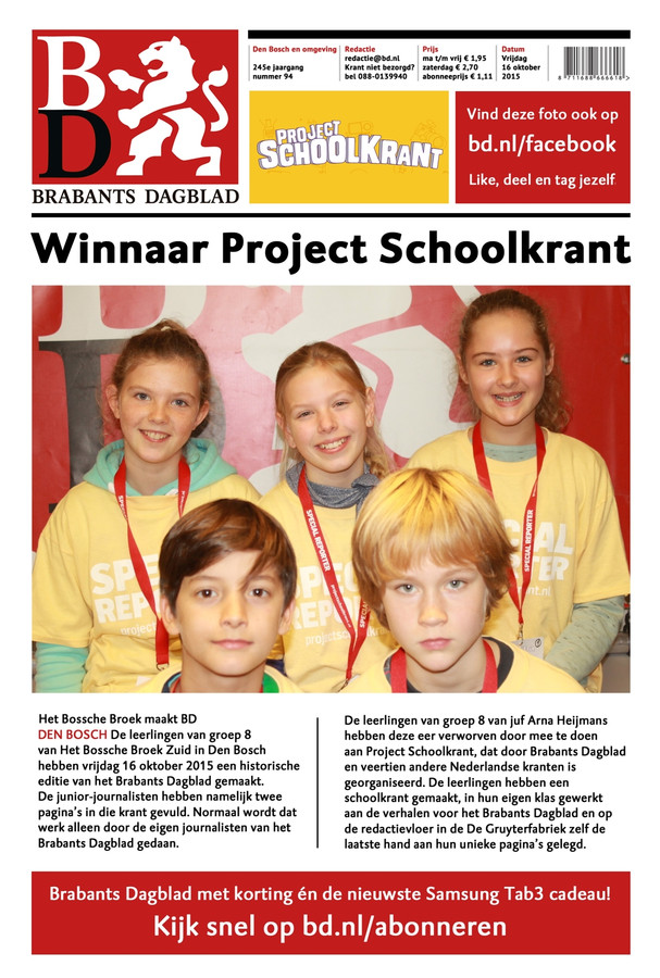 Welke onderwerpen worden in de krant toegelicht Brabants Dagblad abonnement De gedrukte online en digitale versie van de krant redactie Brabants Dagblad behandelen de huidige problemen van zulke regios als Den Bosch Vught Waalwijk Heusden Uden Veghel Meierij Oss Bommelerwaard Brabant. De hoofdredactie is gevestigd in het kantoor in s-Hertogenbosch waar alle algemene redacties gevestigd zijn Brabants Dagblad - Al het Onderwijs nieuws 28-11 1529 Werkendammer 16 opgepakt voor illegaal vuurwerk in schoolkluisje 27-11 1746 Wijbosch krijgt eindelijk een hek op onveilig schoolplei Vergelijkbare zoekopdrachten voor brabants dagblad tablet.